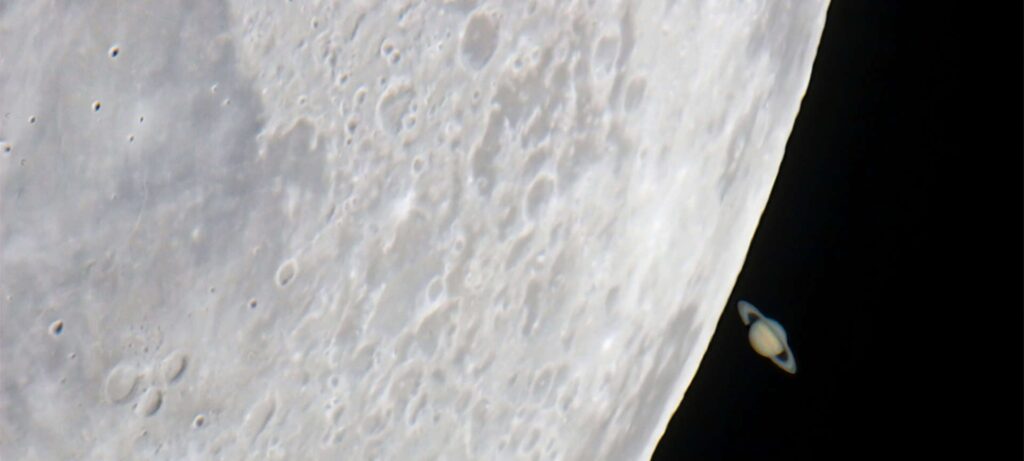 Conjunções Lunares: Observando a Dança Celeste entre Lua, Saturno e Outros Planetas Todo mês, a Lua atravessa o palco do